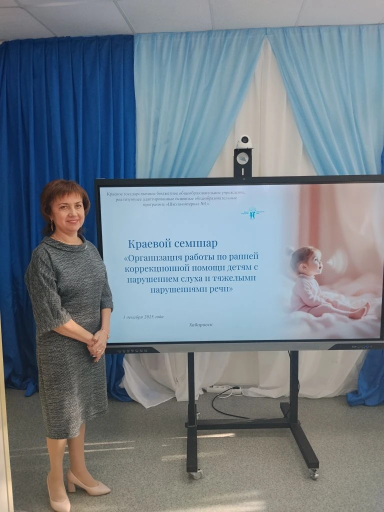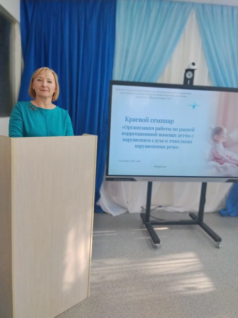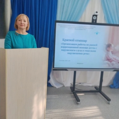 Педагоги МАДОУ «Верботон» представили успешный опыт работы на краевом семинаре по ранней помощи детям с нарушением слуха 3 декабря 2025 года специалисты МАДОУ «Верботон» Фолина Л. Р. и Евтихова Т. Г. выступили с докладом на краевом научно-практическом семинаре «Организация работы по ранней помощи детям с нарушением слуха», который прошел на базе Школы-интерната №1. Мероприятие собрало ведущих экспертов в области сурдопедагогики, дефектологии, психологии и организации системы помощи детям раннего возраста. Семинар был посвящен актуальнейшей теме — построению эффективной системы, которая позволяет выявлять и закладывать фундамент для развития речи, познавательных способностей и успешной социализации ребенка. Коллектив МАДОУ «Верботон», обладающий уникальным опытом работы с детьми с нарушениями слуха, в том числе после кохлеарной имплантации, поделился с коллегами края своими наработками и доказавшими эффективность практиками.